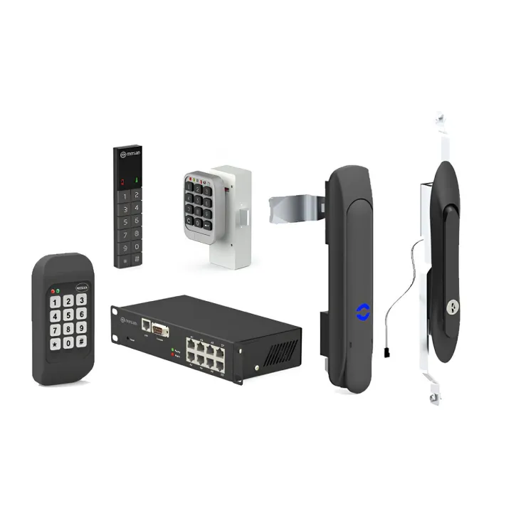 - Смарт-замки — оснащены поддержкой Wi-Fi и управляются через мобильное приложение. Позволяют открывать шкафы дистанционно, предоставлять временный доступ и легко интегрируются в систему.