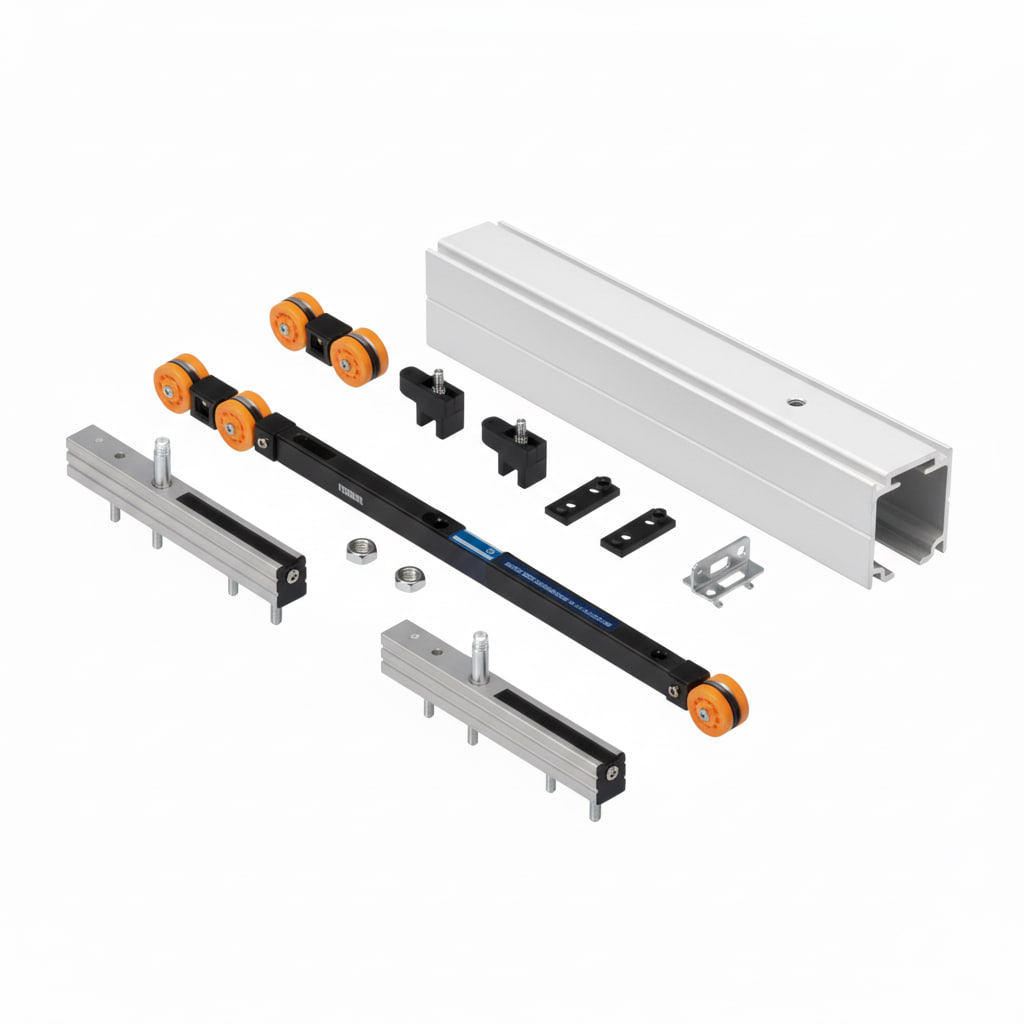 Это премиальный набор механизмов для раздвижных дверей, оборудованный системой плавного закрывания в обе стороны.